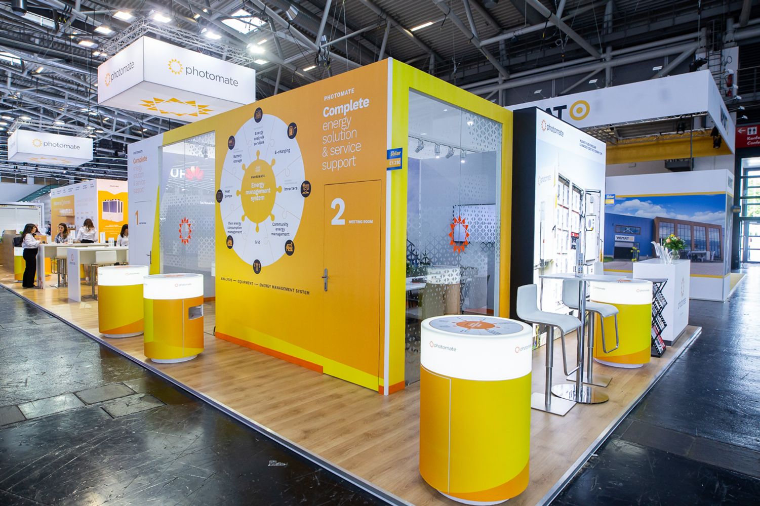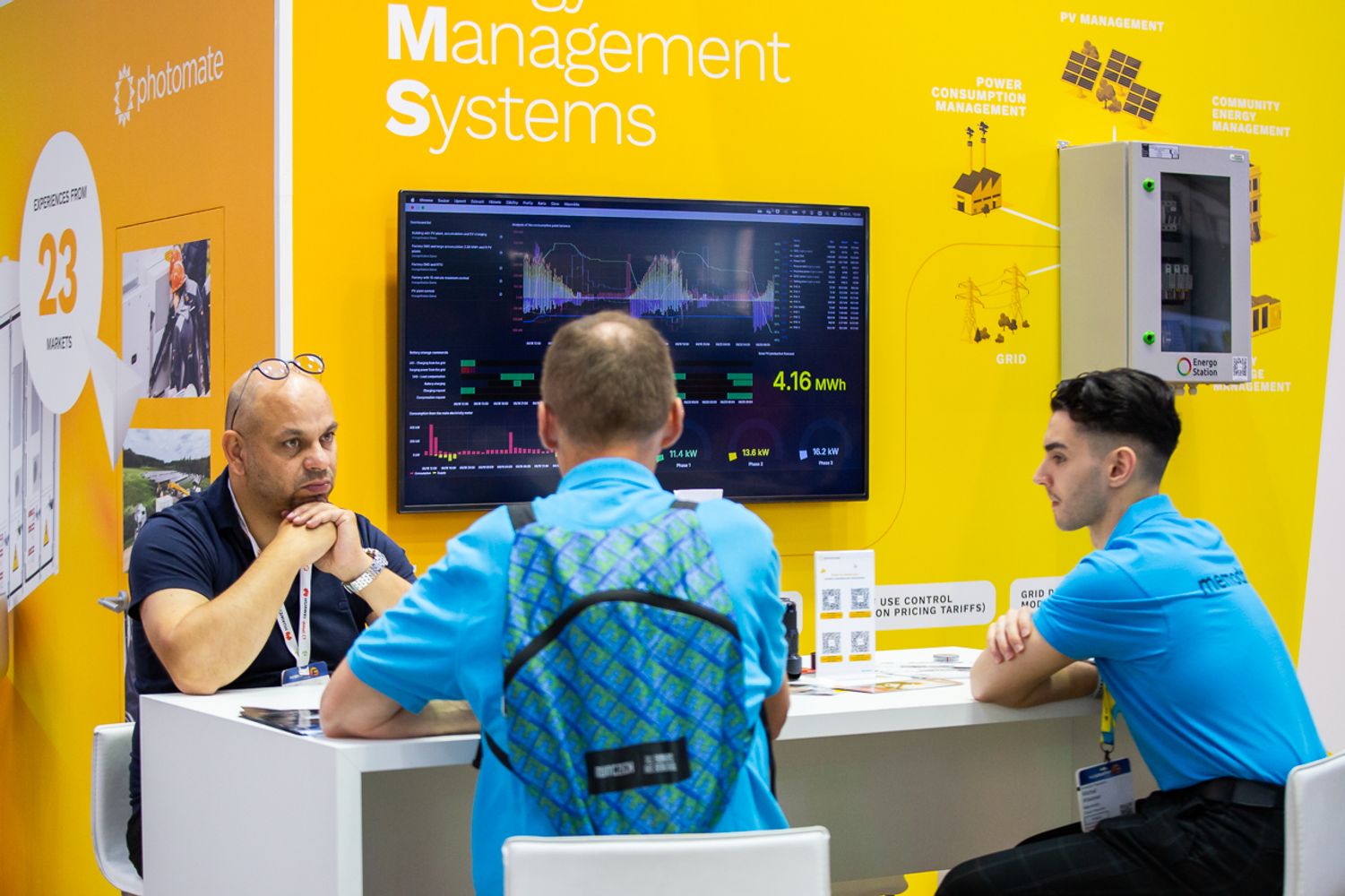 V letošním roce byla zvláštní pozornost věnována inteligentním meziodvětvovým sítím; zvýšení digitalizace a flexibilizace energetické infrastruktury; pokračující dynamický růst globálního trhu obnovitelných energií a elektromobility, stejně jako boom bateriových systémů pro ukládání elektrické energie. Zájem o tato řešení reflektoval i náš Photomate stánek, kde byla k vidění stejnosměrná EV nabíječka od firmy Ekoenergetyka, tepelné čerpadlo Photomate, nové rezidenční bateriové úložiště Huawei LUNA2000-7-14-21-S1 a nový rezidenční asymetrický měnič HuaweiSUN2000-5/6/8/10/12K-MAP0. Velký zájem byl také o ukázku energy management systému, kterou zde představila společnost Energostation.